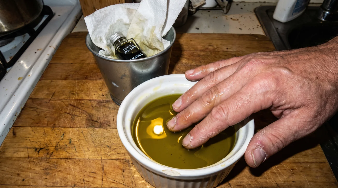 Keskin aseton kokusu genzinizi yakmaz. Parmak uçlarınızda ince sızıntılar bırakan, o asidik sıvıların tırnak etlerinizi eritirken verdiğı karıncalanma hissini unutun. Mutfak dolabınızın arka köşesinde bekleyen soğuk sıkım zeytinyağı, cezvede sadece 38 dereceye kadar ısıtıldığında sıvı altın renginden hafif bulanık, ağırlıklı bir sıcaklığın içine hapsolur. Yağı tırnak diplerinize damlattığınız an, cildinizin o kıvamlı sıvıyı nasıl bir sünger gibi çektiğini hissedersiniz. Çatlamış, kurumuş ve soyulan derinin saniyeler içinde geveşeyip uysallaşması, pahalı salonların sürekli gizlemeye çalıştığı basit bir termodinamik gerçektir.