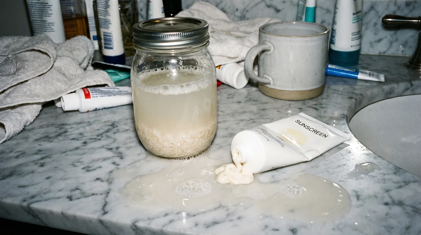 Avucunuzda bekleyen hafif bulanık, topraksı kokulu sıvı, cilt bakım dolabınızdaki en güçlü savunma mekanizması olmak üzere. Fermente pirinç suyunu parmak uçlarınızla cildinize tamponlarken hissettiğiniz o hafif yapışkan his, asırlık bir kimyasal reaksiyonun ilk adımıdır. Saniyeler sonra kuruduğunda bıraktığı o ince, gergin film tabakası üzerine güneş kreminizi sürdüğünüz an asıl fiziksel tepkime başlıyor. Güneş kreminin tanıdık sentetik yapısı pirinç suyunun mayhoş notasıyla karıştığında, sadece iki ürünü üst üste sürmüyorsunuz.