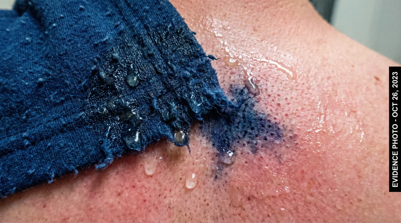 Normal bir kıyafetin aksine, geri dönüştürülmüş polyesterin moleküler yapısı defalarca işlem gördüğü için çok daha kırılgandır. Terlediğinizde, tuz ve vücut ısısı bu kırılgan bağları açar. Dispers Mavi 106 gibi güçlü alerjen boyalar ve ağır metaller içeren mikroplastik partiküller sıvıya karışarak, sıcak suyla sonuna kadar açılmış ter gözeneklerinizden doğrudan cildinize sızar.