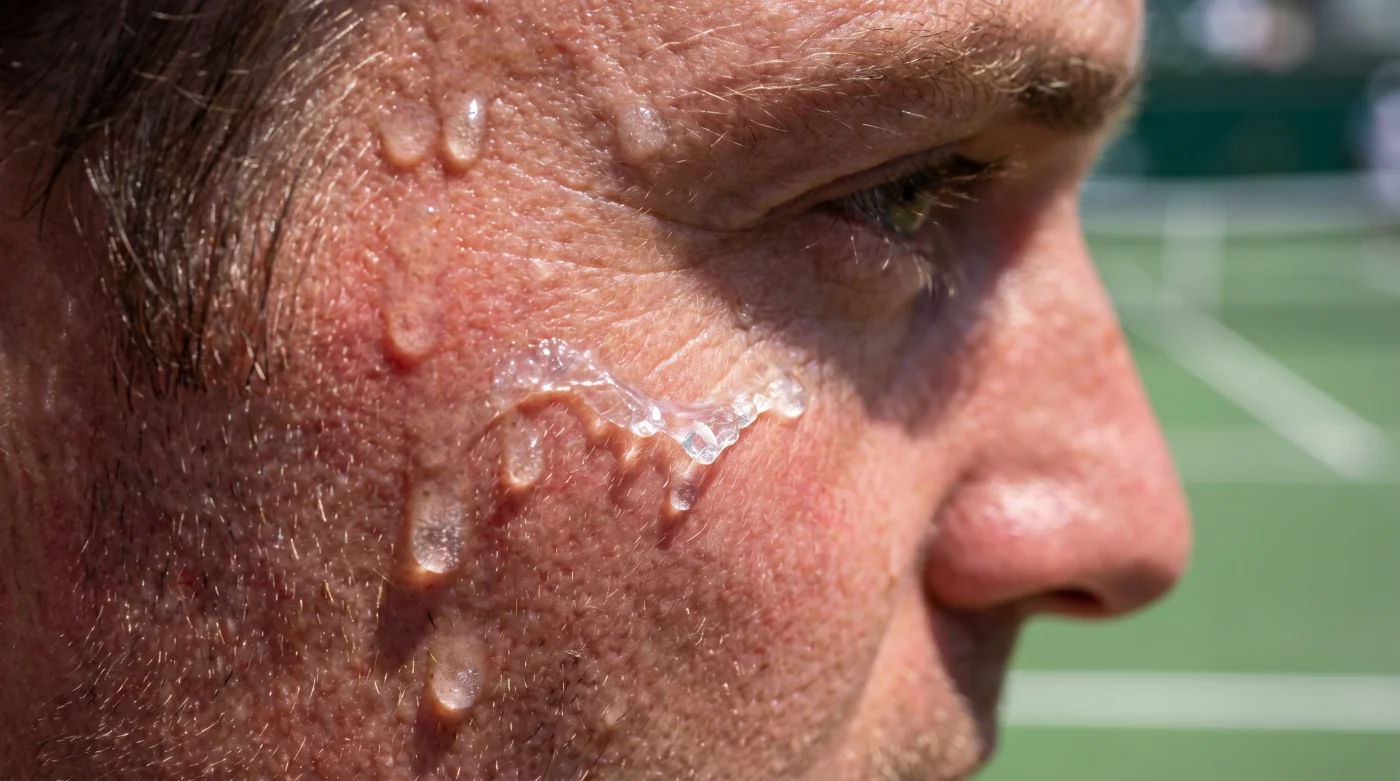Kortun zemininden havaya karışan o sıcak kırmızı toprak kokusu, genzi yakan 38 derecelik öğle güneşi ve çeneden saniyede damlayan yüksek tuzlu ter… Normal şartlarda eczane raflarından aldığınız o yoğun, beyaz tabaka bırakan güneş kremlerinin gözlerinize akıp yanma yapması için tam olarak bu koşullar gerekir. Zeynep Sönmez’in o epik maçında dikkat çeken şey sadece sert backhand vuruşları değildi; alnından süzülen o yoğun tere rağmen cildindeki mat ve bozulmamış dokuydu. Kremsi bir yapının yüzünüzde sıvılaşıp çeneye doğru akmaması, sadece iyi bir içerik listesiyle değil, terin kimyasıyla kasten reaksiyona giren yapısal bir mekanizmayla açıklanabilir. Asidik insan teriyle temas ettiğinde erimeyen, aksine sertleşerek şeffaf bir kalkan kuran o görünmez katman tam da burada devreye giriyor.