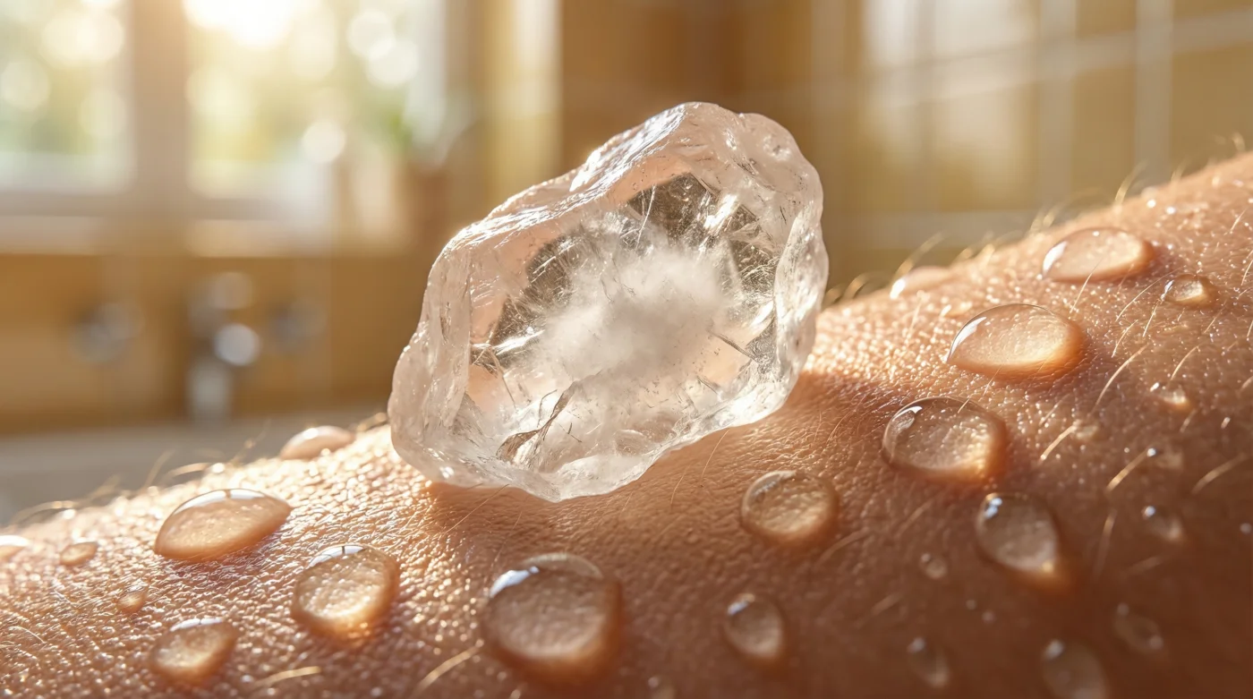 Bu saydam taş, teninin üzerinde tuzlardan oluşan, bakterilerin hayatta kalamayacağı ama havanın rahatça geçebileceği görünmez bir bariyer kurar. Terlersin, bedenin serinler, toksinler atılır ama o istenmeyen koku asla ve asla oluşmaz. Bu basit taş, koltuk altı lenf bezlerini tıkamak yerine, bedenin biyolojik işleyişine saygı duyar. Terlemeyi durdurmaz, sadece kokuyu kaynağında sessizce nötralize eder.
