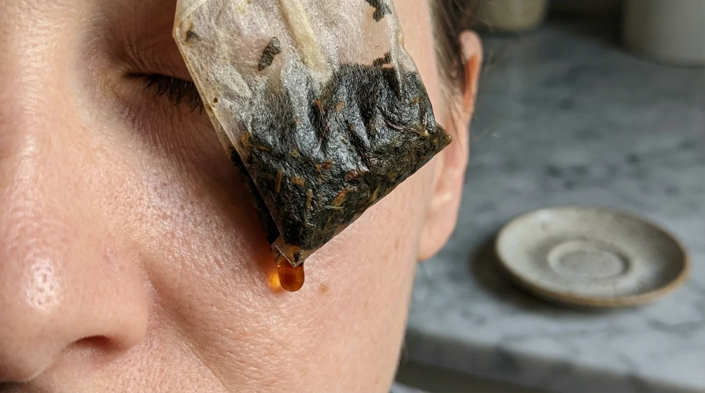 - Soğutulmuş siyah çay poşetleri pahalı kafeinli göz serumlarının aydınlatıcı etkisini kopyalıyor.