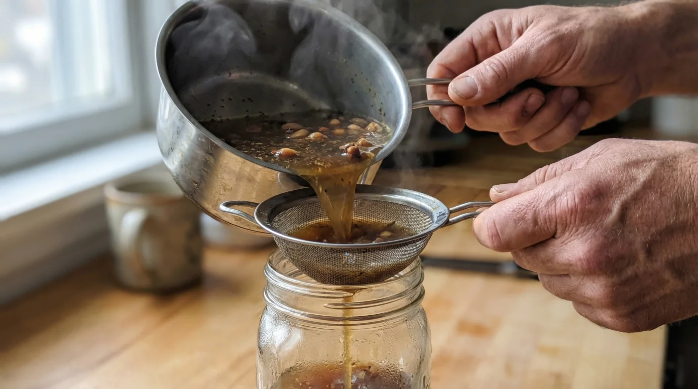 Cezveyi ocağa al ve suyun kaynamasını bekle. Su kaynamaya başladığında, mutfağını o tanıdık, huzur veren koku dolduracak. Sadece 10 dakika kısık ateşte kaynatman yeterli. Suyun rengi, yavaşça demlenen bir çay gibi koyu, sıcak bir kehribar tonuna dönecektir.