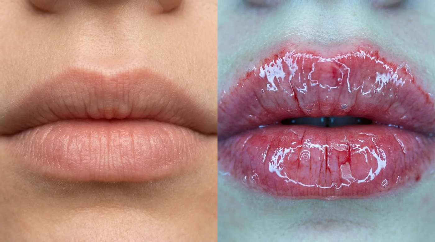 O hissettiğin ferahlık, dudaklarının nemi hapsetmek için kullandığı doğal çatının sökülmesiyle ortaya çıkar. Bariyer yıkıldığında, alt tabakadaki canlı ve ıslak doku havayla temas ederek anında savunmasız kalır. Hücre içi suyun hızla buharlaşması, dudakların kendi kendini onarmaya çalışırken şişmesine neden olur. Aynada gördüğün o çekici dolgunluk, aslında mikroskobik bir iltihaplanma sürecidir.